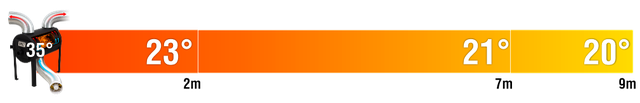 Під час використання печі в режимі тепловентилятора вона здатна обігрівати, за своїх компактних габаритів, великі обсяги приміщень. Без вентилятора, піч працює, приблизно як звичайний бульер'ян.